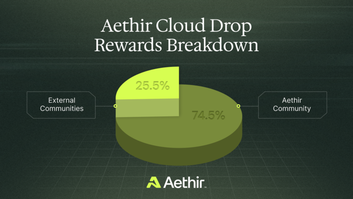 Aethir Cloud Drop 参加者はシーズン 1 エアドロップに含まれ、シーズン 1 報酬の 74.5% は Aethir コミュニティ メンバー (チェッカー ノードを含む) 用に予約され、25.5% は外部コミュニティに割り当てられます。